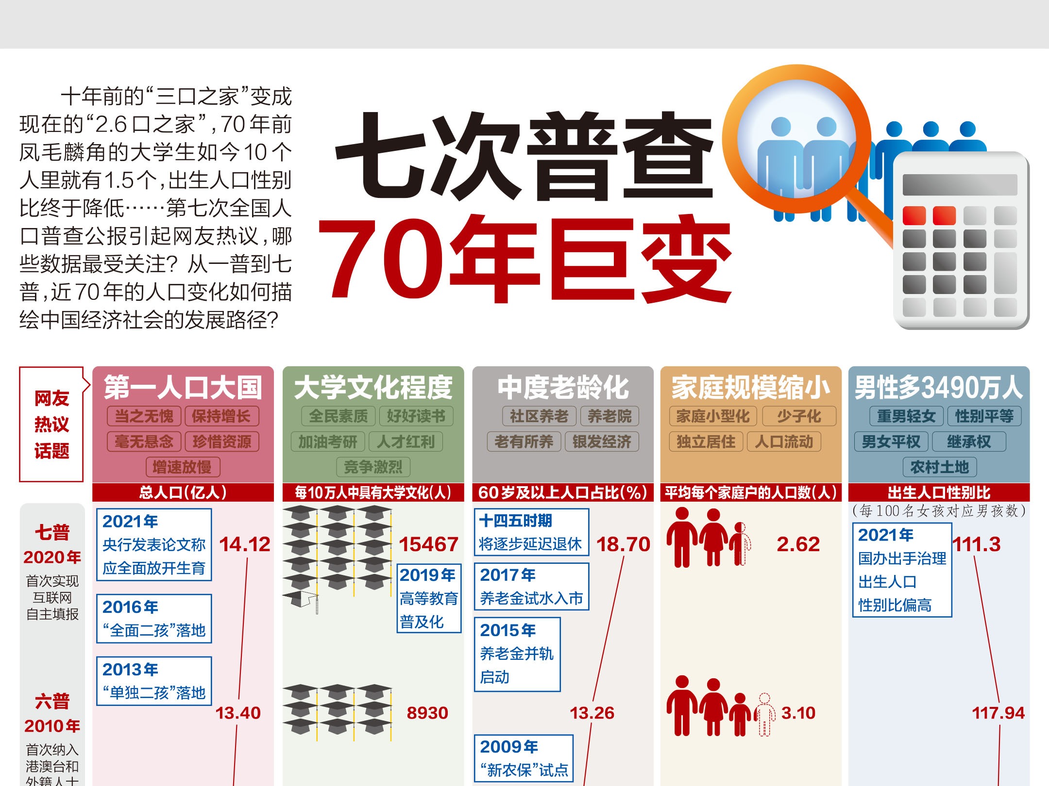 一图读懂|七次普查,70年巨变!看看网友热议哪些话题