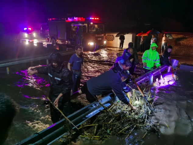 河道被杂物堵塞洪水涌入村庄,怀柔消防紧急排险