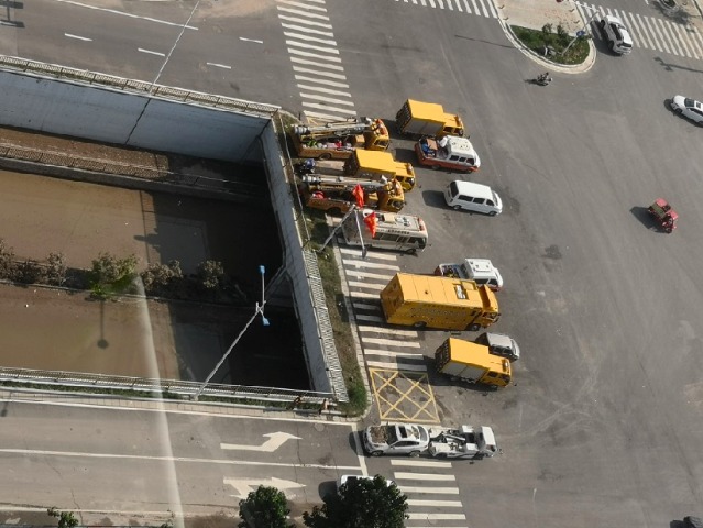 北京排水集团突击队全力作业,郑州莲湖路隧道提前排除积水