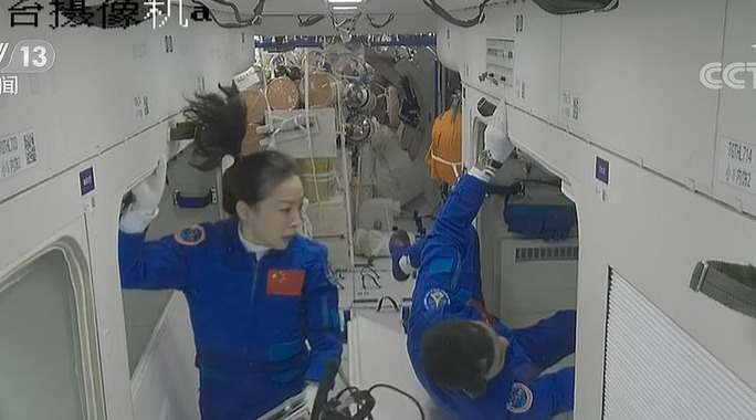 第二批航天员进入中国空间站 王亚平辫子抢镜