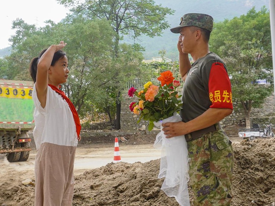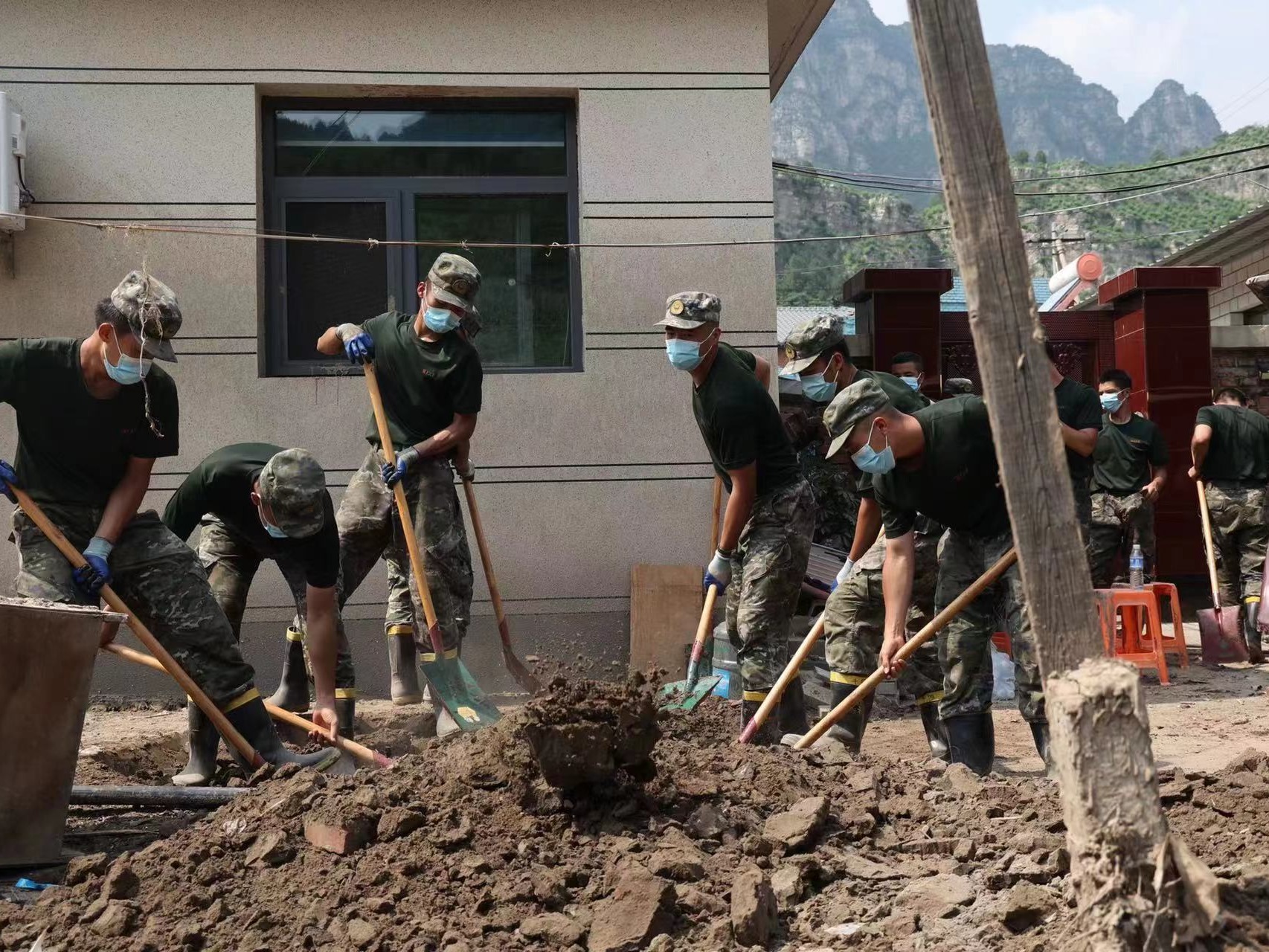 党旗所指就是前进的方向,武警官兵奋战在清淤一线
