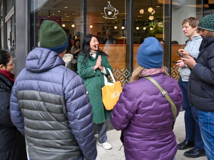北京站候车大厅,旅客排队领“福”字,孙楚泊现场献艺