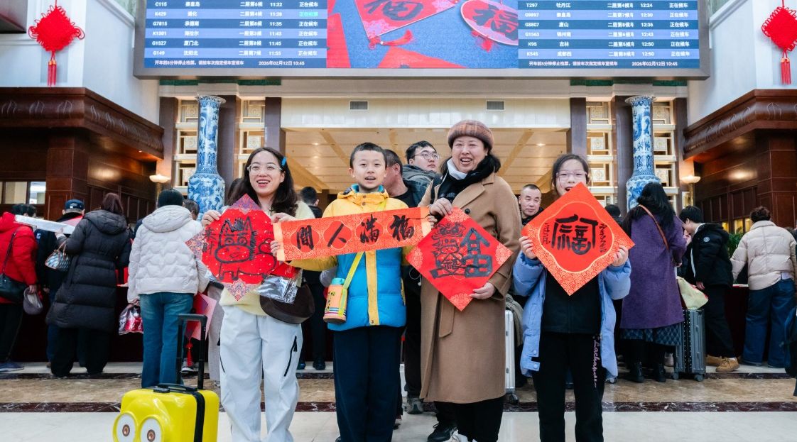 春节将至,年味渐浓,北京站候车大厅旅客排队领“福”字