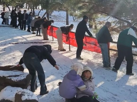 积雪已清理可正常游览!九眼楼长城景区全员出动扫雪