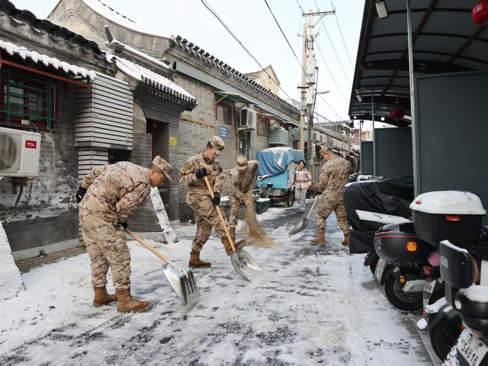 雪后“暖”流,武警官兵为驻地扫出平安路