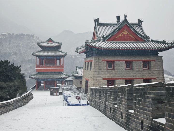 北京初雪妆点慕田峪长城,银装素裹壮美静谧
