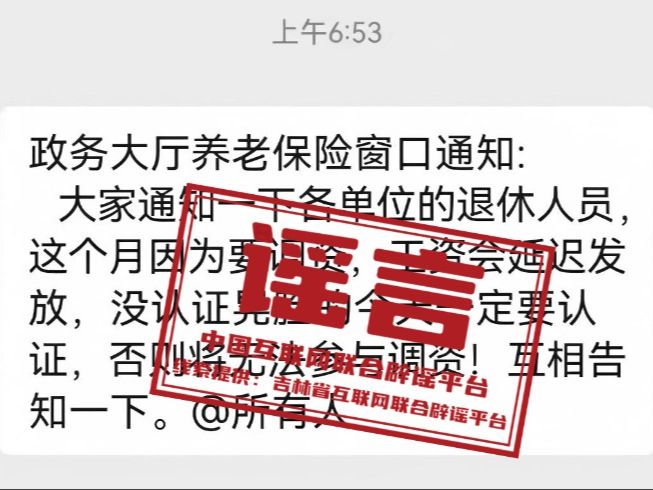 今日辟谣:官方回应“不认证无法参与调资,退休金将延迟发放”等不实信息