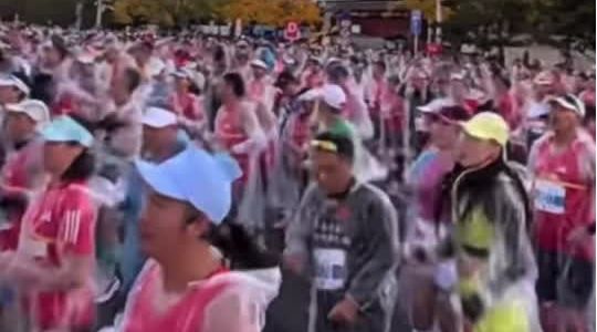 2025北京马拉松3万人一起热身,现场太震撼了