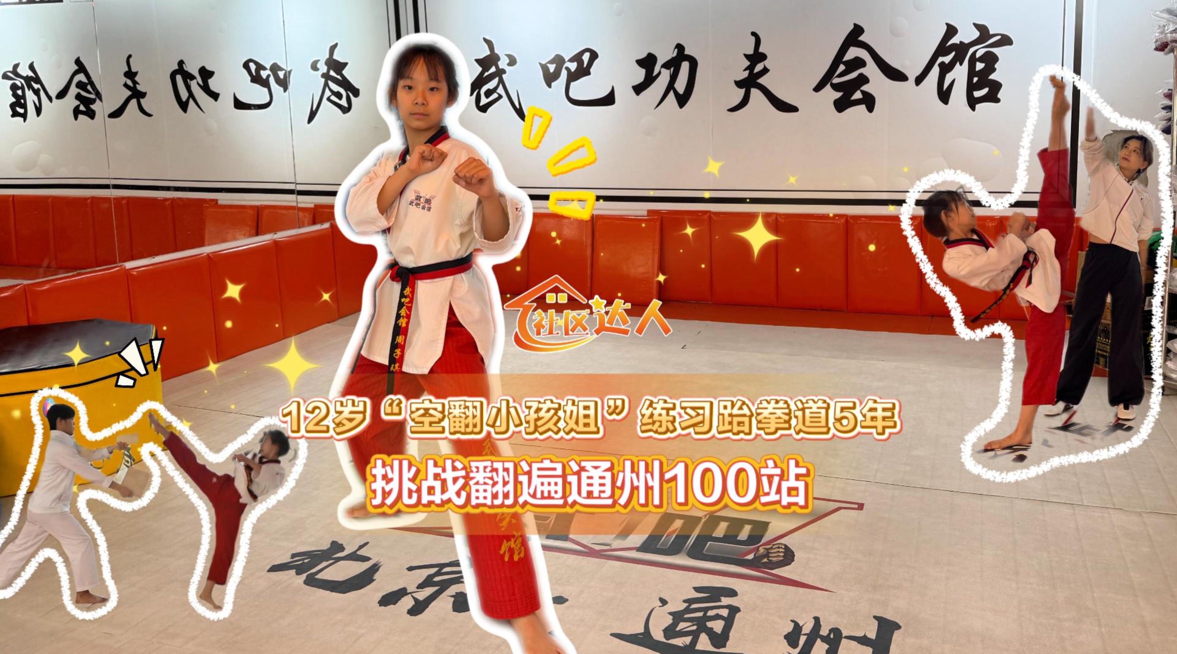 社区达人|12岁“空翻小孩姐”练习跆拳道5年,挑战翻遍通州100站