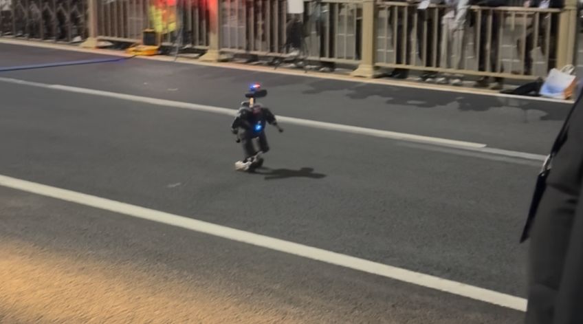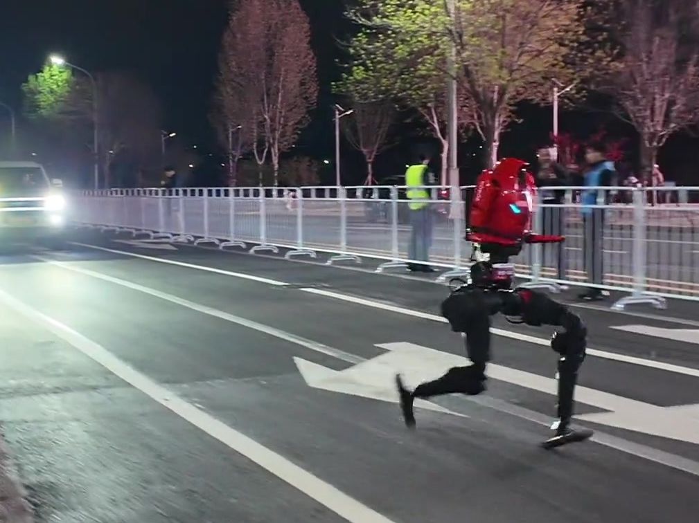 机器人半马测试赛,终点全速加力冲线!随后平稳刹停,大步离场