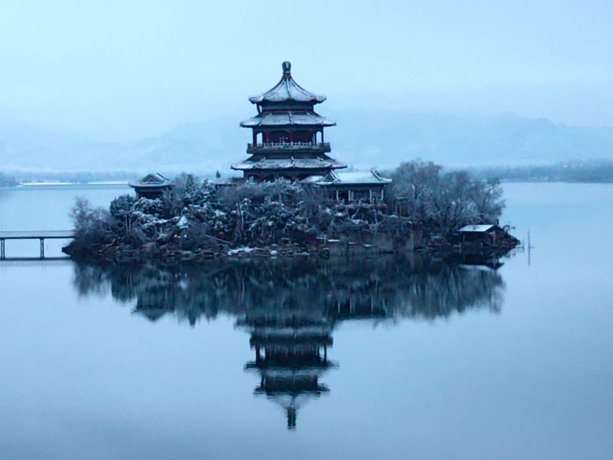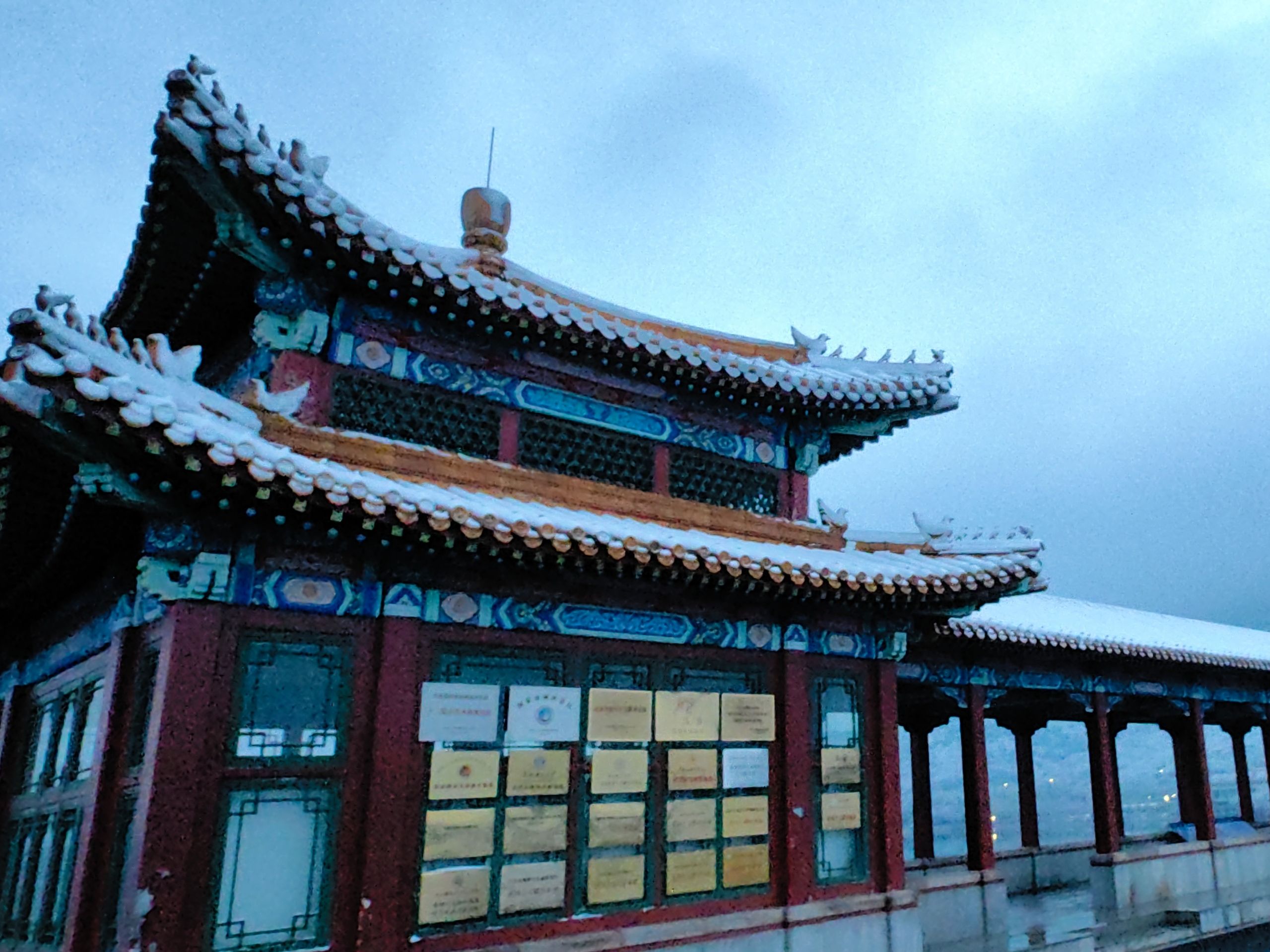 颐和园迎马年首场春雪:蜡梅凝冰晶,茶灯映古园