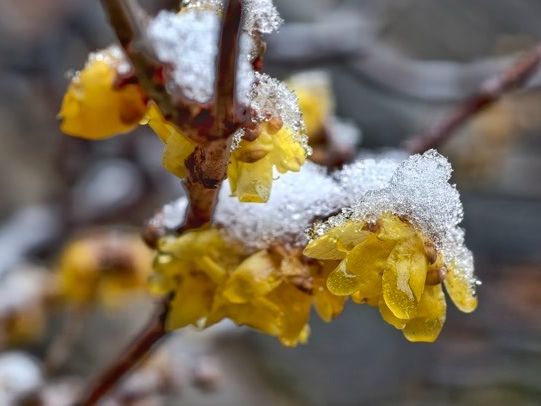 北京景山公园蜡梅遇春雪,这是早春最浪漫的景色