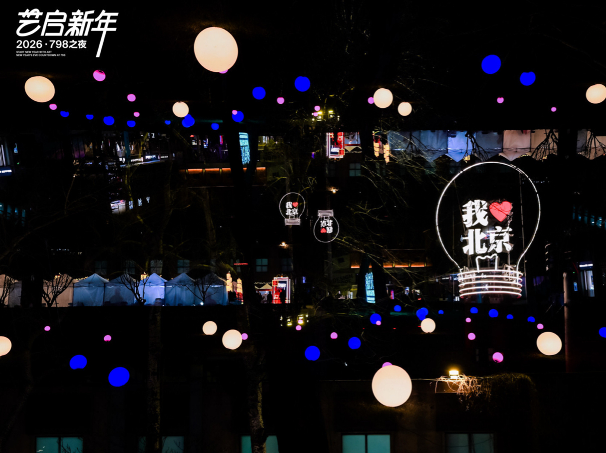 数字烟花点亮工业苍穹,798艺术区跨年夜吸引众多市民迎新年