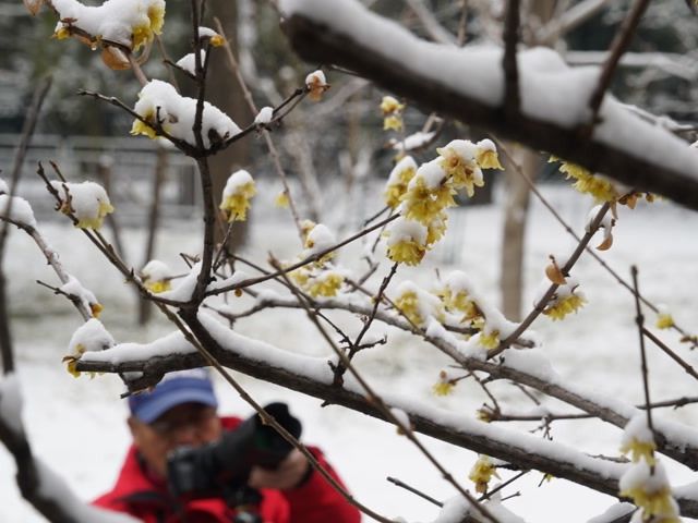 景山蜡梅覆雪花更美