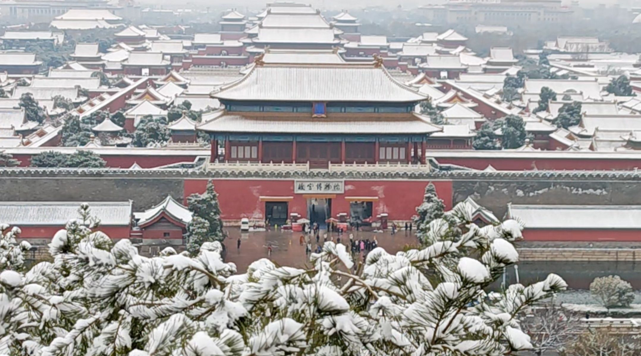 瞰雪后紫禁城:玉顶映宫墙,连绵穿古今