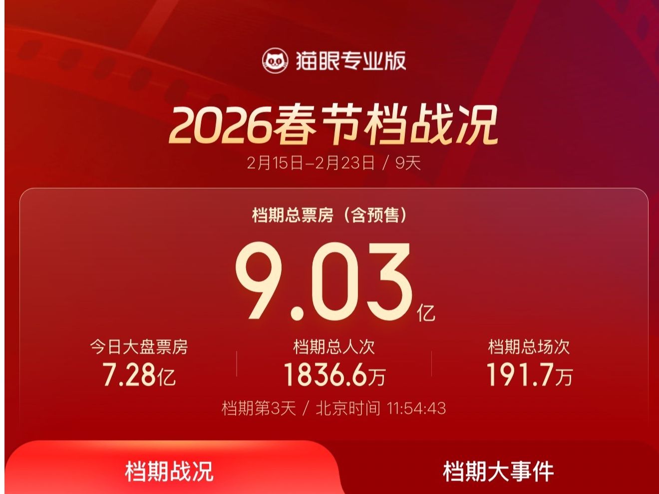 春节档电影票房超57亿