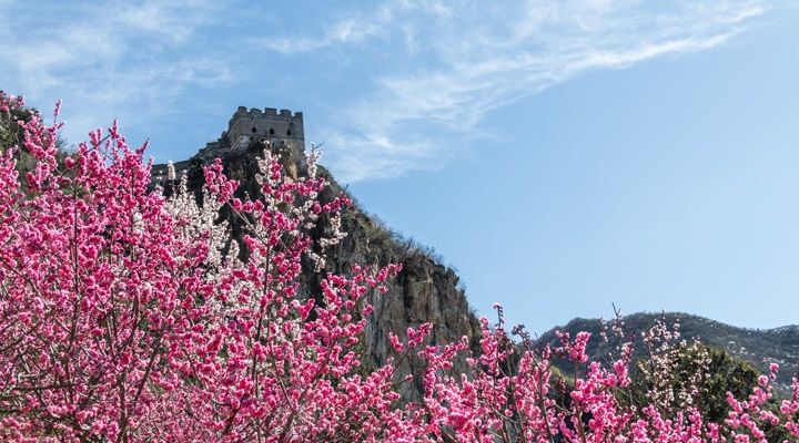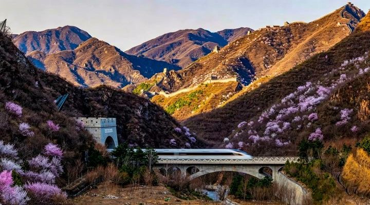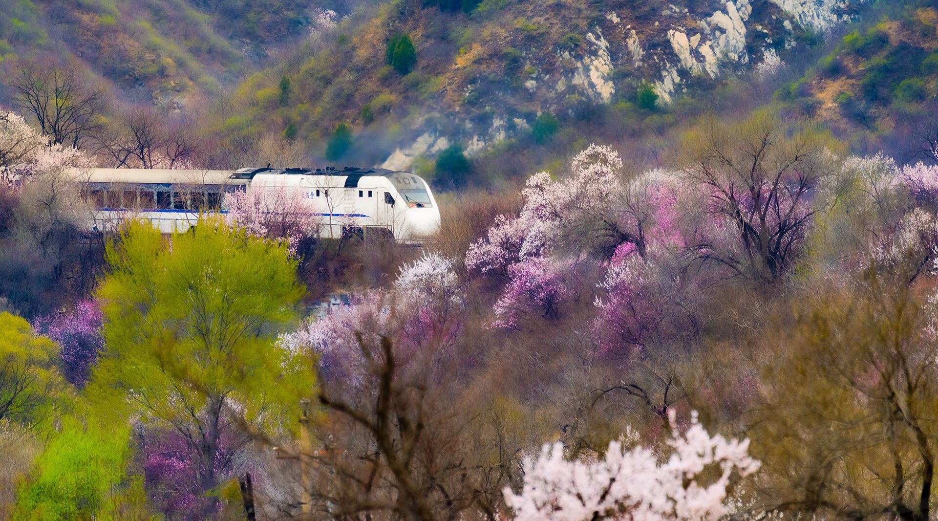 长城脚下繁花似锦,开往春天的列车绘就浪漫画卷