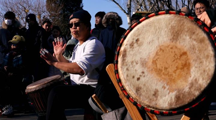冬阳照什刹海,手鼓奏响市井欢歌