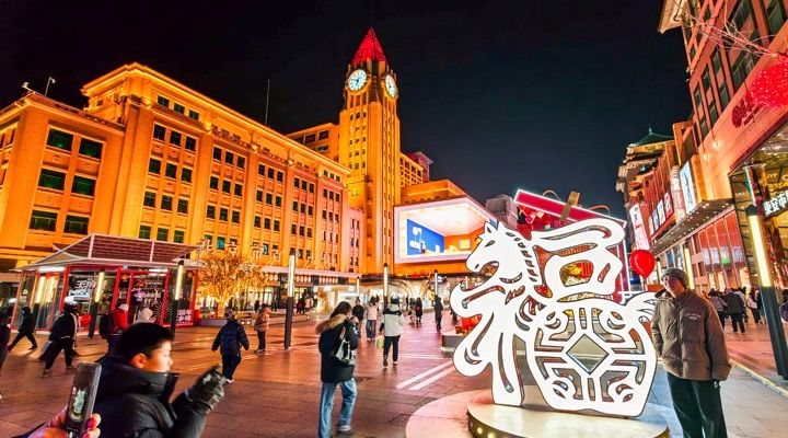 冬日夜色添光彩,商街闪亮迎新年