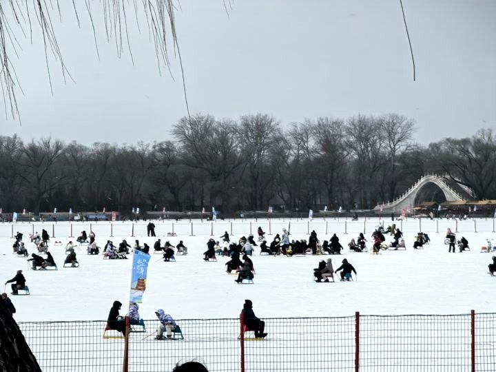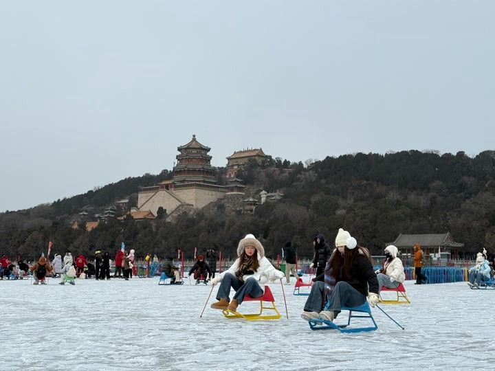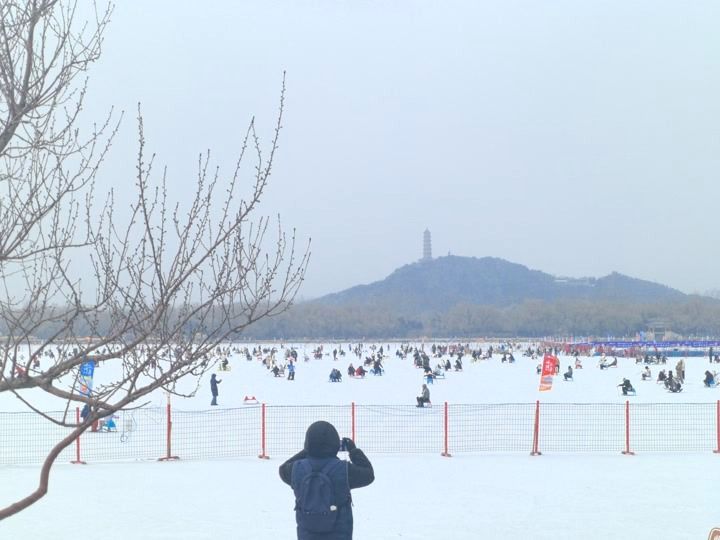 市民冒雪在颐和园冰场畅玩