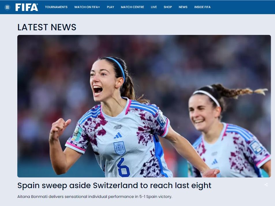 轻松大胜瑞士队 西班牙女足率先晋级8强
