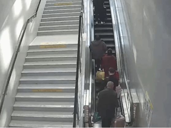 旅客在扶梯摔倒,工作人员7秒急停化解险情